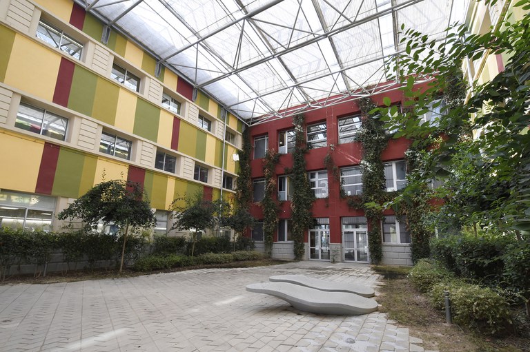 EDIFICIOS H: espacio hall de 800 m2. Son grandes claustros (2+2) con una singularidad remarcable y que han acogido ya numerosos eventos. Se les llama edificios H por su singular forma.
